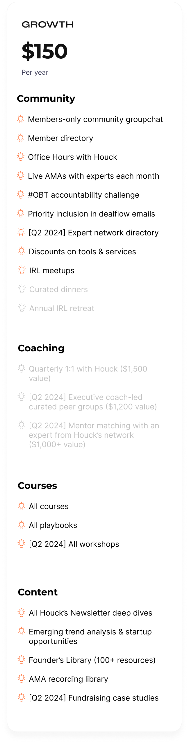 We’re building the Wiki for startup founders:→ Full access to all 100+ issues of Houck’s Newsletter