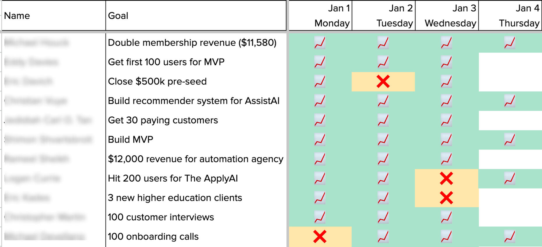 OBT stands for One Big Thing.Each month members can set ONE ambitious goal publicly within the community and commit to sharing a daily update with the group.A random member who hits their goal gets a shoutout across my social channels (150,000+ reach).OBT helps you stay focused on your north star and not get distracted by small fires.