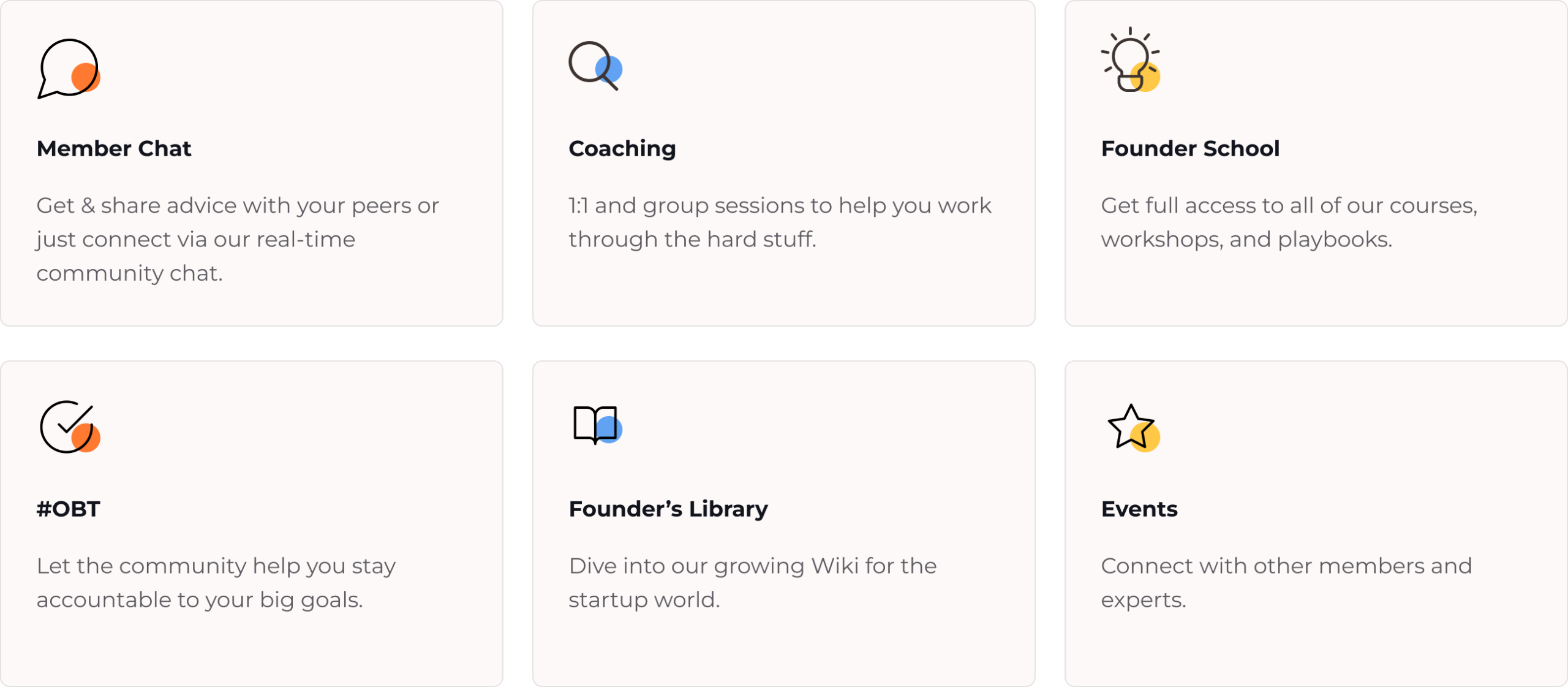 Ok, startups are never easy. Building a startup is one of the hardest (and most impactful) things you can do.But you don’t need to play on hard mode.When we went from having an idea to raising a $10 million Series A from a16z for my last startup in 1 year, it was the community around me and mentors I’d met that helped me rise to the challenge and held me accountable.But most founders don’t have that and the founder journey can be very lonely — so that’s why I built this membership.Inside you’ll find countless resources, form authentic relationships with new founder friends, and simply level up as a founder to give your startup the best chance of success.